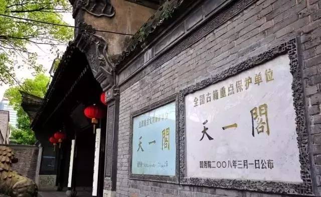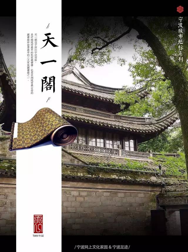 “港通天下,书藏古今”是宁波的城市形象主题口号,其中的“书藏古今”便是指宁波的天一阁。天一阁之名,取义于汉郑玄《易经注》中天一生水之说,因为火是藏书楼最大的祸患,而“天一生水”,可以以水克火,便取名“天一阁”。