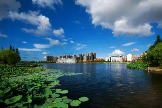 这一湖波光潋翠,城市里的森林氧吧。