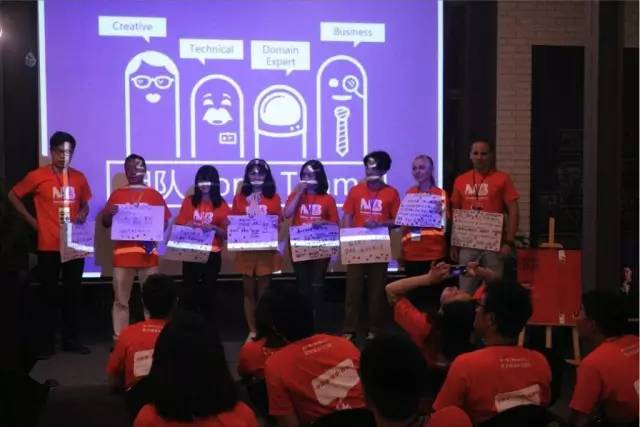 游戏将现场的参与者分为五个团队,并选出一个代表挑选四个关键词,随后团队通过合作将这些关键词组织成一个创业想法,再让代表将想法用一分钟的时间讲述出来。
