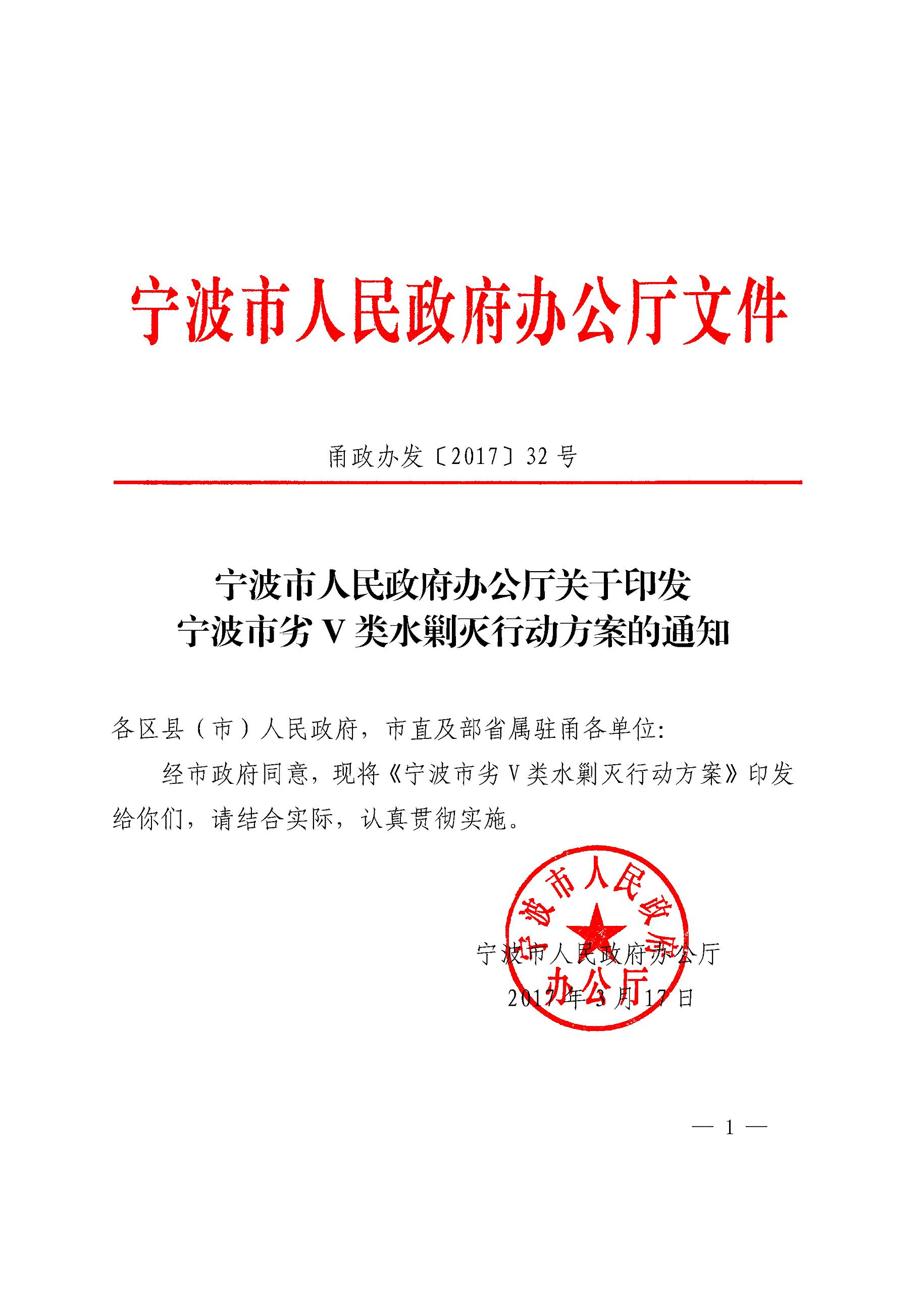 关于印发宁波市劣V类水剿灭行动方案的通知
