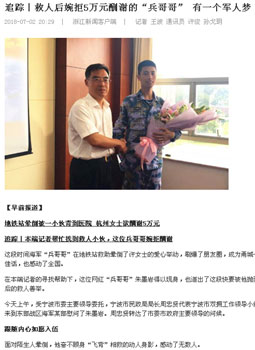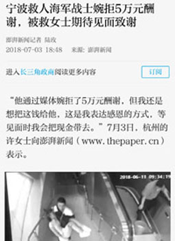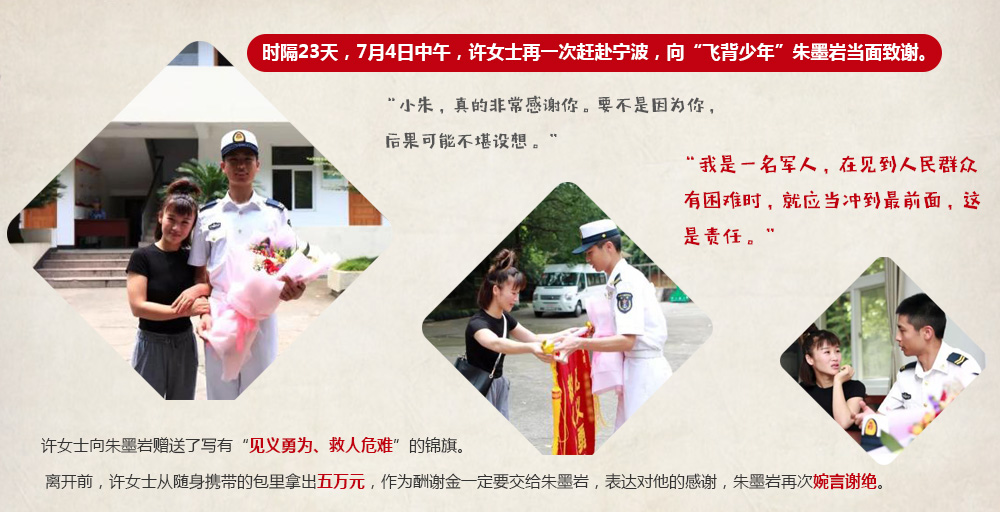 网友“凌子”:宁波小伙的救人义举,再次见证了大爱宁波,而懂得感恩的许女士,也同样让人感动。