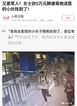 网友“人在旅途3nxy”:一份爱心,支撑起路人的感慨;一个军人,展现当代雷锋的精神!宁波这个文明城市,彰显大爱,你我共同守护!