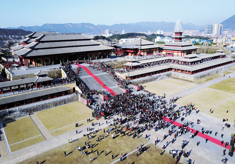 横店影视城秦王宫景区人山人海、热闹非凡。东阳日报记者包康轩摄