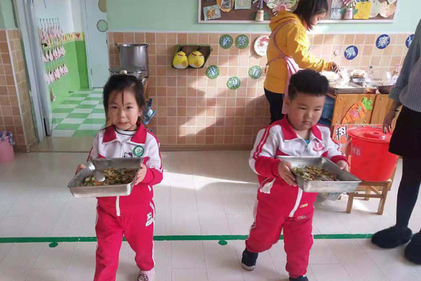于是我向五幼郑丽秋园长建议,选一个班级尝试幼儿自助午餐。3—6岁是幼儿生活习惯形成的关键期,良好的进餐行为对幼儿的习惯养成有着重大影响。通过餐前食谱推荐、幼儿自取餐盘、自选勺筷、自取饭菜、自己整理等环节,培养幼儿的自我服务能力。我跟园长分析了现有午餐管理模式的弊端和自助午餐的作用以后,园长欣然同意,并支持我在白桦B班进行试点。