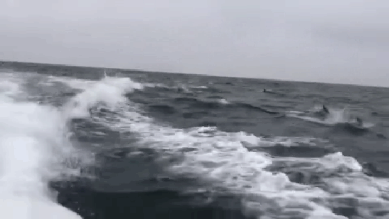 今年6月下旬的一天,几位海钓爱好者在东极四姐妹岛海域拍摄的视频吸引了许多人的眼球:成群的海豚在湛蓝的海上游过,有的还不断的跃出海面,数量有好几百头,场面蔚为壮观。