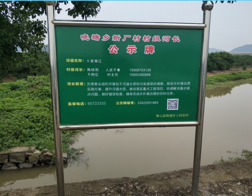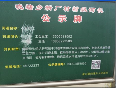 象山县晓塘乡新厂村村级河长公示牌被损坏。