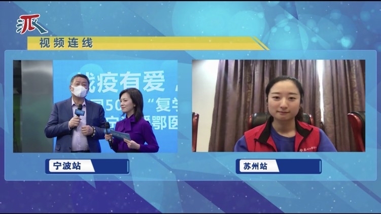 在甬派与苏州站会场的现场连线中,苏州会场工作人员、苏州日报报业集团记者赵思诣说,今天在苏州站“复学包”公益行动中,不到2个小时,苏州市民就领走了三分之二的防疫复学包。截至今天16时,苏州站的复学包已全部发放完毕。