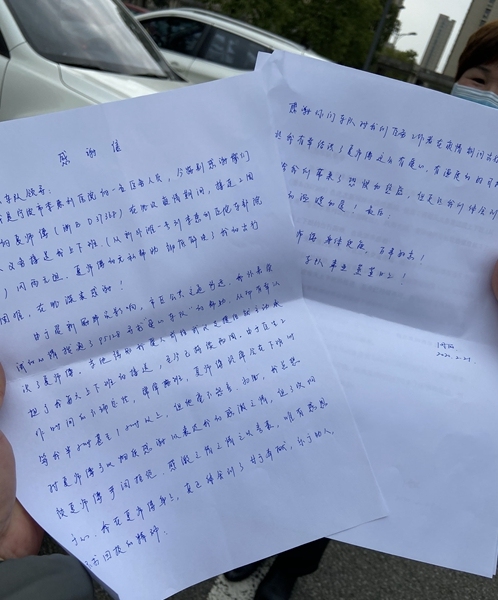 感动之际,周医生给夏师傅的单位手写了一封感谢信:“有幸结识了夏师傅这位有温度有爱心的司机。疫情给我们带来了恐惧和疑虑,但更让我们体会到了人与人之间的温暖和爱。”