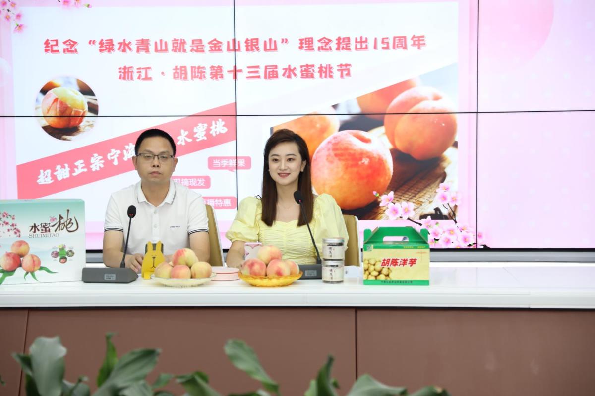 今天晚上,宁海县胡陈乡乡长严义靖化身主播,现场测试水蜜桃的甜度,讲解水蜜桃的种植和优惠活动等,网络直销胡陈水蜜桃。此次活动也是纪念“绿水青山就是金山银山”理念提出15周年暨浙江·胡陈第十三届水蜜桃节的开幕式。