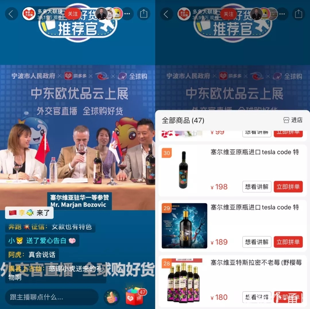 “为中国和塞尔维亚的友谊干杯!”6月8日上午,拼多多直播间不断响起清脆的碰杯声。
