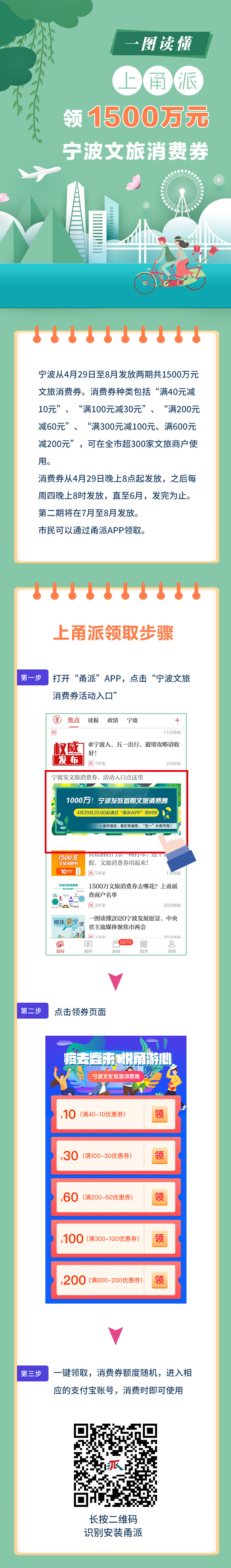 4月29日,宁波要发文旅消费券啦!总额1500万元,上支付宝、甬派、宁聚,即可领取!