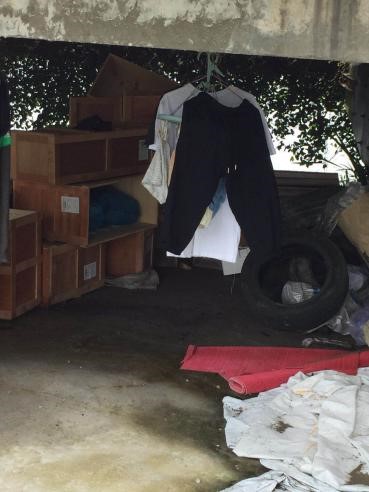 中塘河黄谢路桥下岸边堆放垃圾及杂物