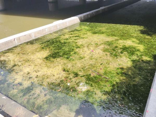 东钱湖旅游度假区钱湖大道大转盘下面河道漂浮物