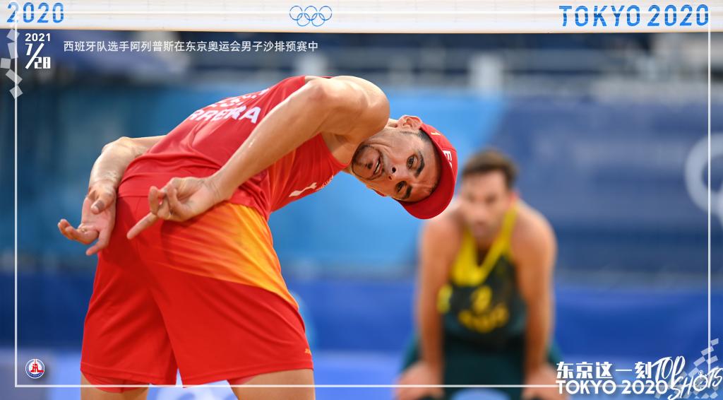 7月28日,西班牙队选手阿列普斯在东京奥运会男子沙排预赛中。