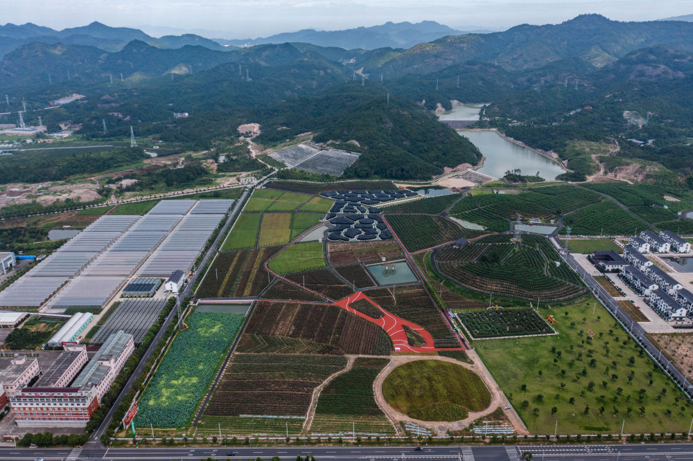 这是7月7日在浙江省东阳市花园村拍摄的现代农业生态园(无人机照片)。新华社记者 徐昱 摄