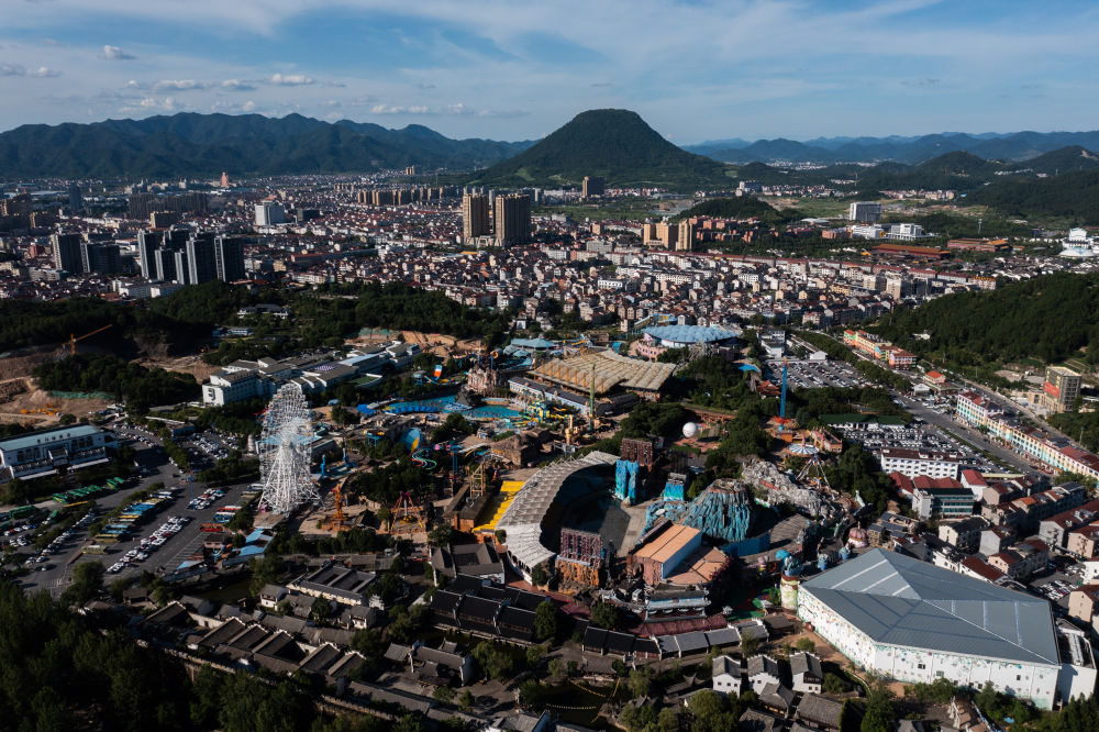 这是7月15日拍摄的浙江省东阳市横店镇(无人机照片)。新华社记者 徐昱 摄