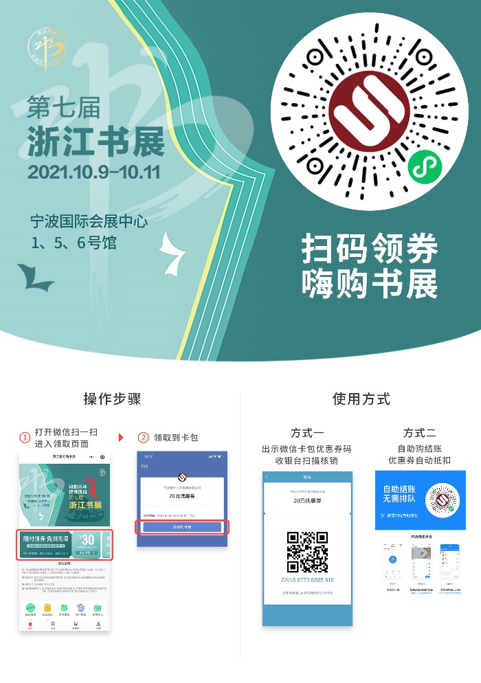 而接下来的10月9日-10月11日,书展大幕揭开后,组委会每天还将投放一定数量的满50元减20元券,读者可通过识别“书展购”小程序码领取。每个账号可领取3张。