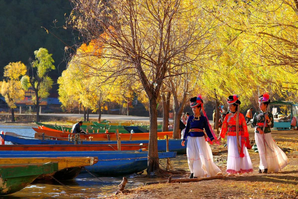 草海、红嘴鸥、白杨林、摩梭木屋……初冬的舍垮村色彩斑斓,集泸沽湖畔美景于一身。近几年,脱贫摘帽后的舍垮村迈入发展的快车道,产业已经初具规模。