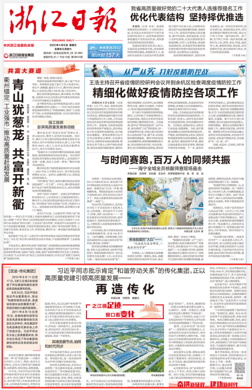 2010年8月11日至17日,《浙江日报》连续报道了传化集团构建和谐劳动关系的成果和经验。