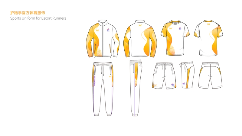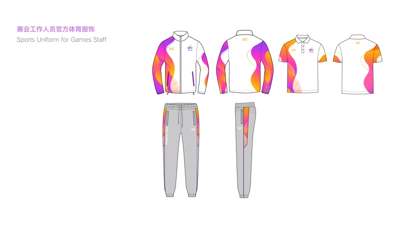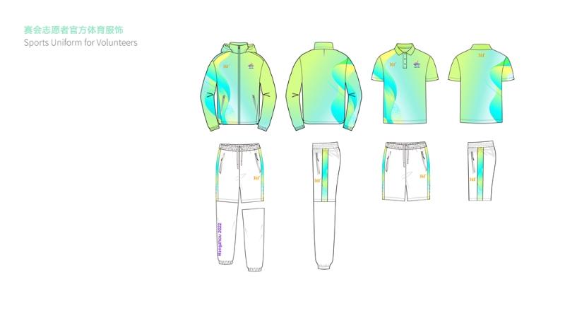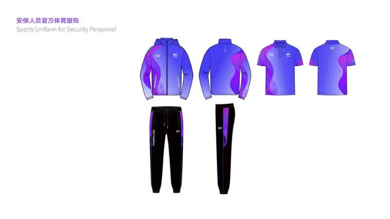 杭州亚运会官方体育服饰选用杭州亚运会核心图形变化丰富的右侧部分,整体呈现出灵动润泽的曲线美。中间融入充满时尚感、科技感的互联网云点状元素,融合传统与创新,交错呈现的点、线、面元素,给人以绵延的视觉美感和无穷的想象空间,象征着欢聚与交融、新 生与活力,体现了超越共融的比赛景色。