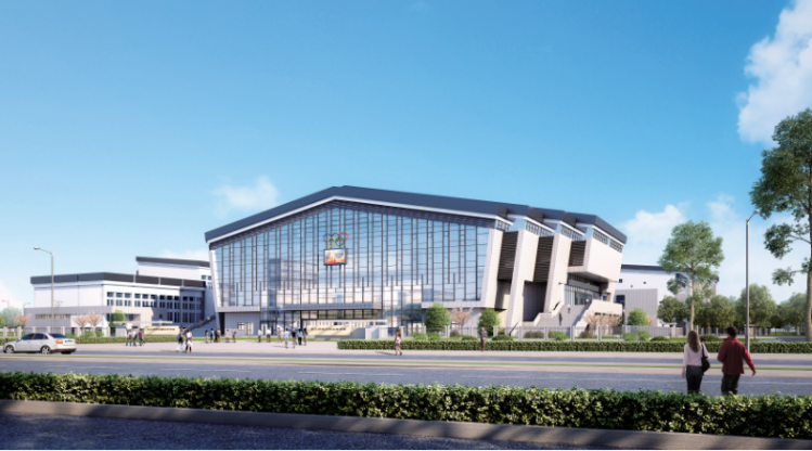 中国轻纺城体育中心体育馆为亚运会排球项目比赛场馆,位于绍兴市柯桥区,在亚运村东南方向且相距约41公里,含主比赛馆及热身馆。该场馆是绍兴最大的体育场馆,以“珠莲(联)璧盒(合)”为设计理念。总建筑面积18513.38平方米,观众席位数3666个。