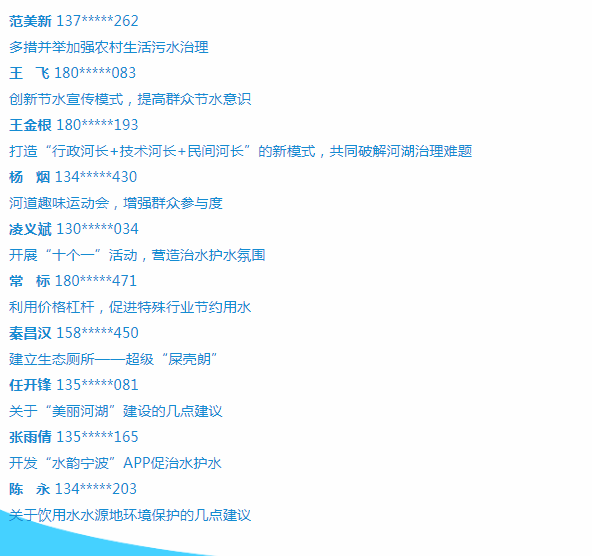 活动启动后,网友反响热烈,参与热情高涨,后台每天都能收到来自各行各业的金点子,有高校大学生、社区工作者、企业管理者,也有环保从业者。他们从各自的生活、工作角度,围绕治水护水等各个角度发表建议,不乏令人眼前一亮的“金点子”。