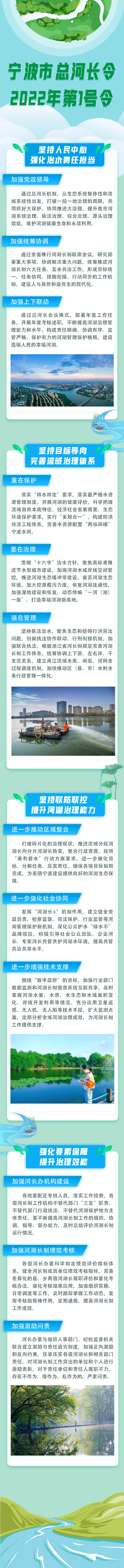 近日,浙江省委常委、宁波市委书记彭佳学,市委副书记、市长汤飞帆联合签发宁波市2022年第1号总河长令,要求