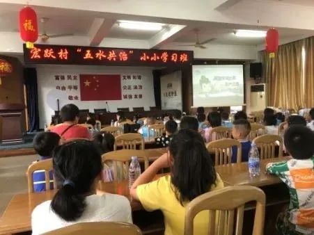 逍林镇宏跃村邀请文锦书院蒲公英中队和村假日班的40余名小学生参加了一场别开生面的“五水共治”护水小课堂。