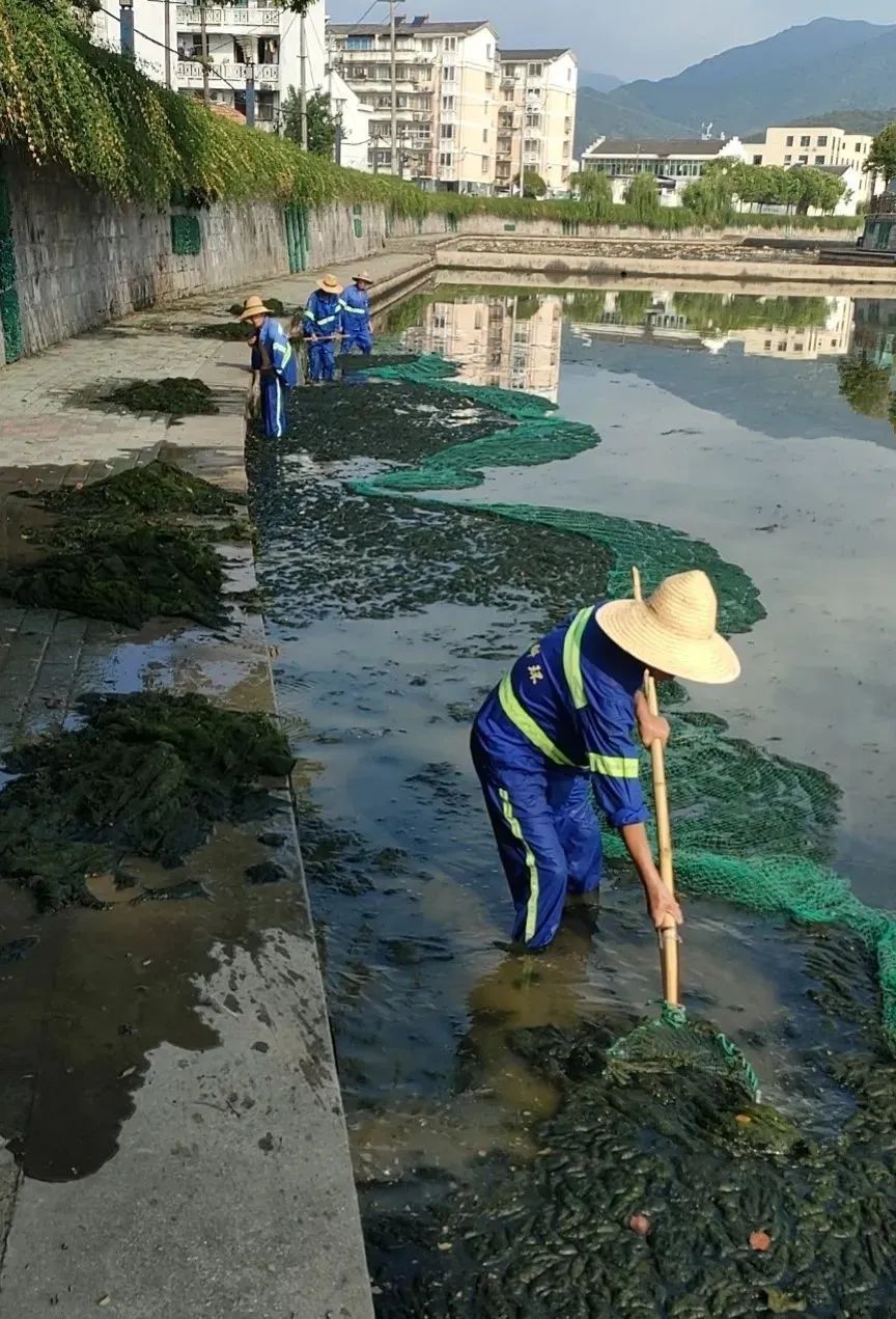 奉化区立即组织保洁人员对河道内的水藻进行清理,并加强对舍辋溪河的保洁力度和频次;同时要求工作人员加强日常巡查,发现问题后及时整改,确保河道水面整洁。