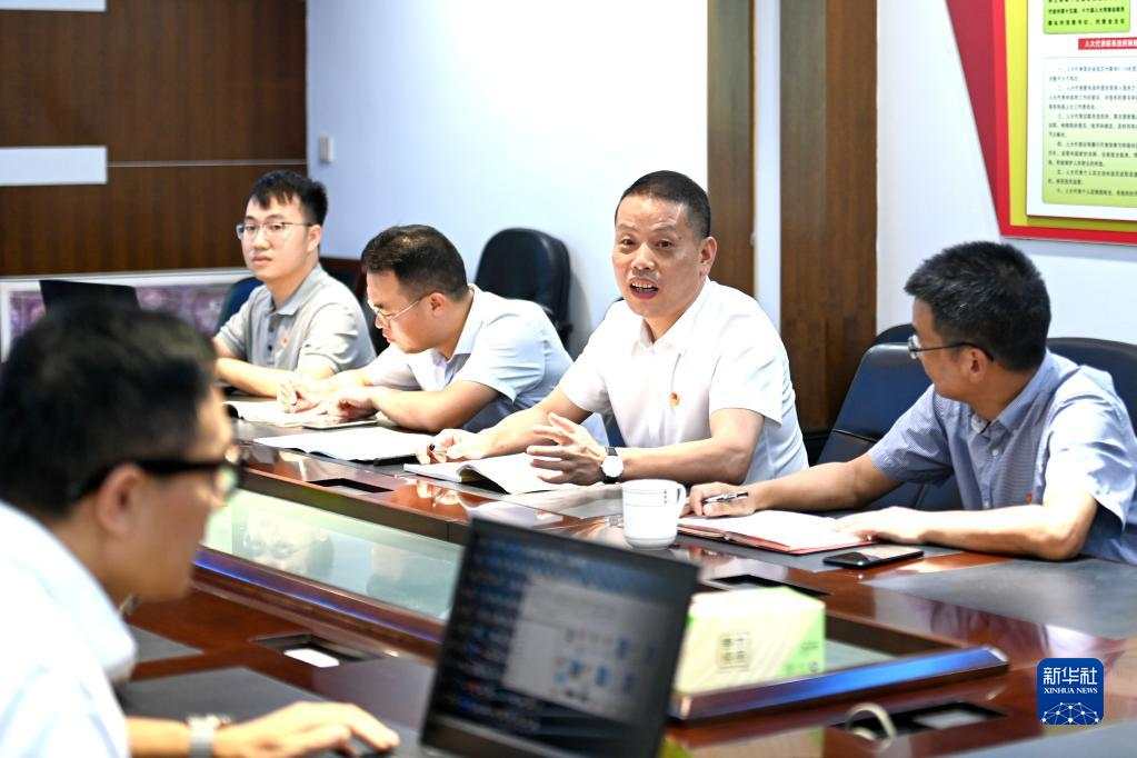 在浙江省宁波市奉化区萧王庙街道滕头村的会议室里,傅平均(右二)与村干部、村民代表参加一场“未来乡村”建设讨论会,具体讨论新建民居地下室面积、花园规划等问题(9月16日摄)。新华社记者 黄宗治 摄