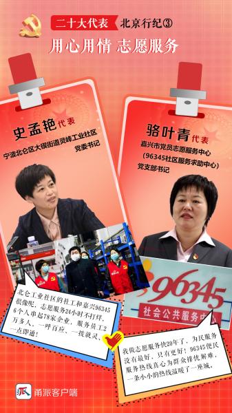 党的二十大召开之际,中国宁波网、甬派10月15日起推出“园区管家 企业保姆 ‘百灵通’史孟艳”专题,围绕牢记嘱托有担当、共同富裕有特色、服务员工有温度、社会治理有创新、志愿服务有情怀、服务企业有办法等话题,连线党的二十大代表、宁波市北仑区大碶街道灵峰工业社区党委书记史孟艳,并通过她的“北京行纪”,与其他党的二十大代表共话“百灵通”;我们同时将邀请见证者,听听他们对宁波的工业社区“百灵通”探路先行的心里话。