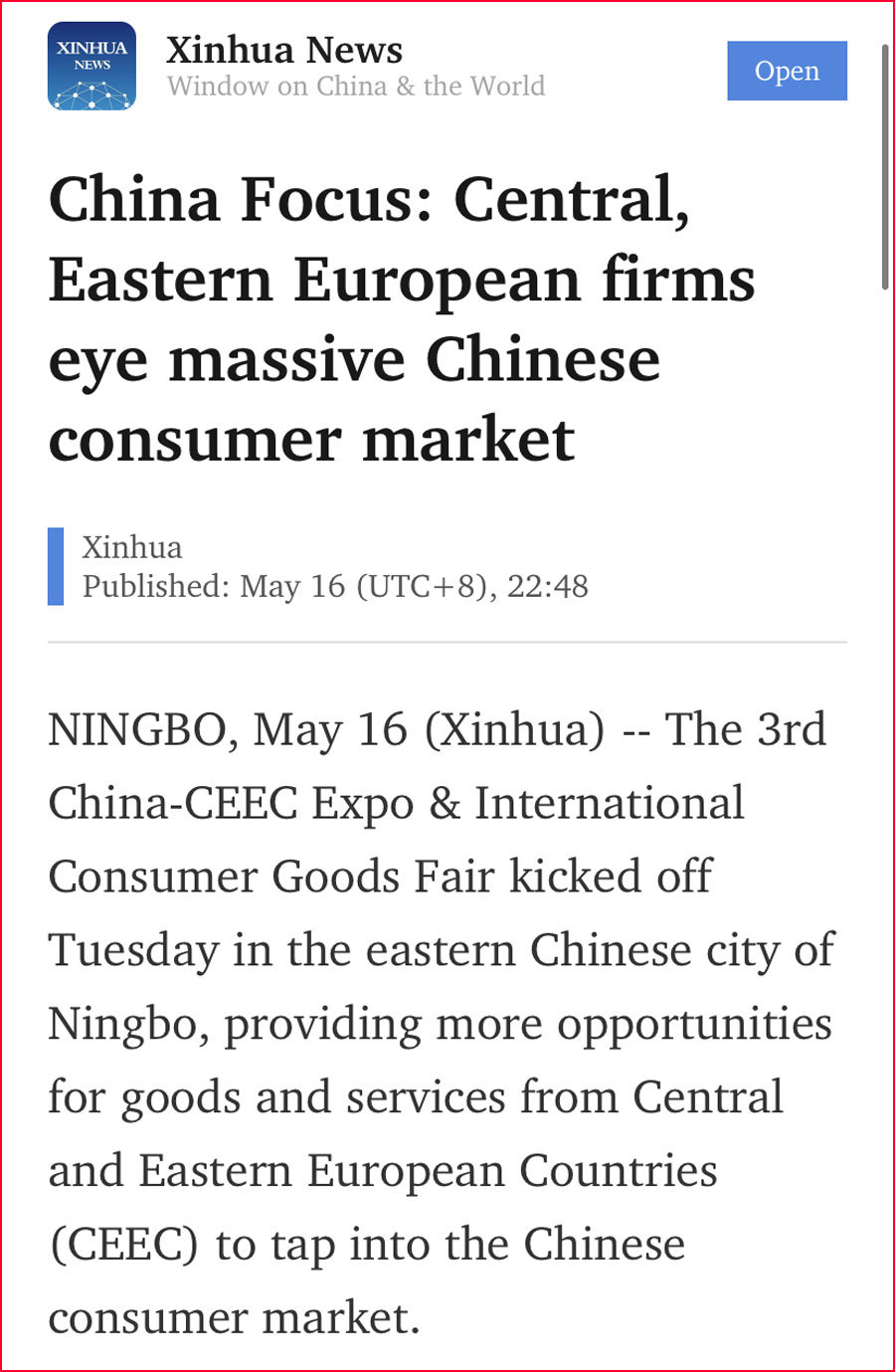 《新华社》:China Focus: Central, Eastern European firms eye massive Chinese consumer market