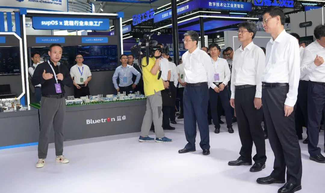 本次大会,蓝卓以supOS智造无限可能为主题,携工业操作系统最新技术、解决方案以及各行业先进应用实践成果亮相工业互联网成果展。工业和信息化部党组成员、副部长张云明,工业和信息化部总工程师赵志国,江苏省省长许昆林等领导莅临蓝卓展位参观指导。