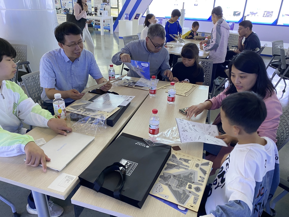 参观了智能芯片加工中心和柔性电子技术研究中心后,便是孩子们最期待的环节——歼-20模型制作。将几十个零件拼装成一架飞机,对孩子们而言难度不小。“上阵父子兵”,一旁的家长有当“副手”协助孩子的,也有亲自上手帮孩子组装的。