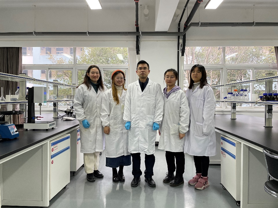 李砚硕(左一)在宁波大学实验室。受访者供图