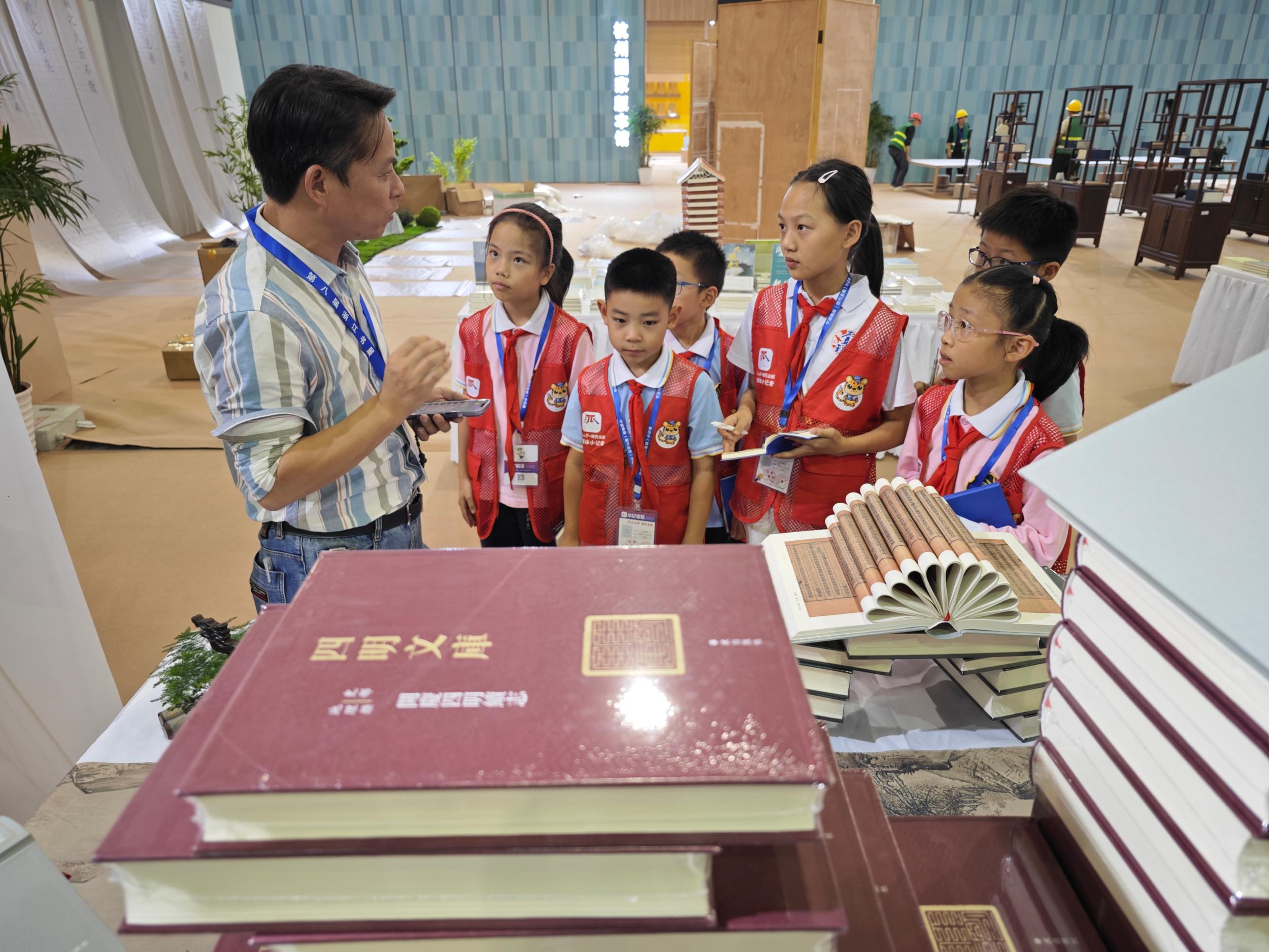 在书展上看到了这么多书,让刘馨彤印象最深的是宁波出版社的《四明文库》。“《四明文库》就好比是咱们宁波的《四库全书》。”宁波出版社社长助理、发行中心主任杨力克向小记者们介绍了《四明文库》的内容和出版意义,“这是宁波有史以来规模最大的地方文献出版工程,让古人的智慧在今天继续发挥作用、体现价值。”