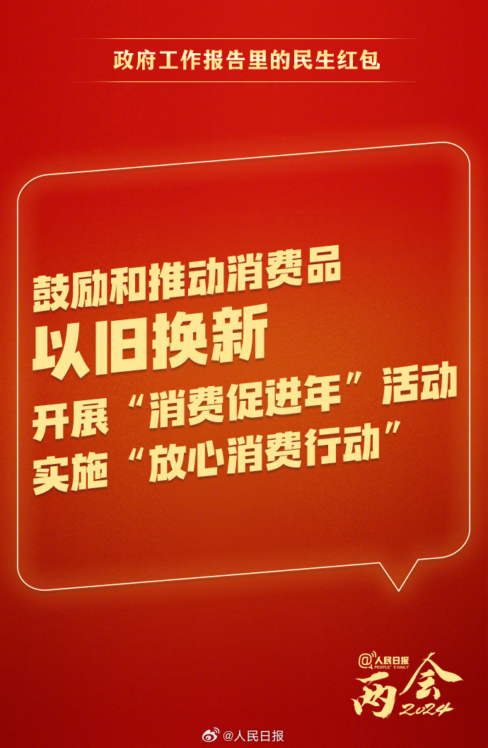 政府工作报告里的惠民政策都有哪些?鼓励和推动消费品以旧换新,加强无障碍适老化设施建设,更多↓↓戳图了解!