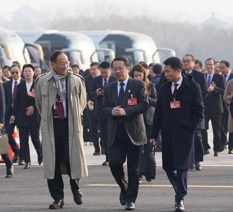 3月7日,全国政协十四届二次会议在北京人民大会堂举行第二次全体会议。这是全国政协委员走向会场。
