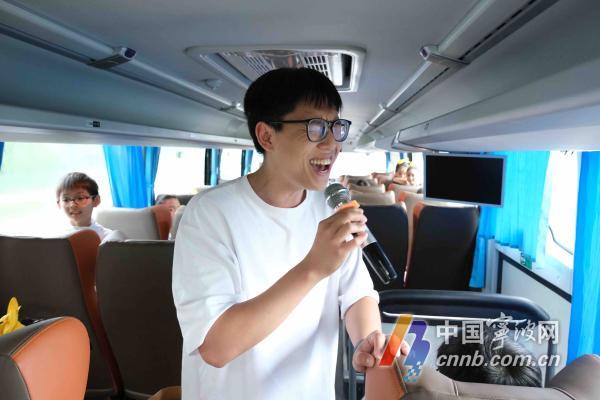 坐上大巴,来自宁波财经学院的三名大学生志愿者—蓝杰、张夏鑫、柯俊锦就和同学们互动做起了游戏。“我们一起来唱歌好不好?《小美满》大家会不会?一起唱好不好?”大学生志愿者问大家。“好!”孩子们大声回答。