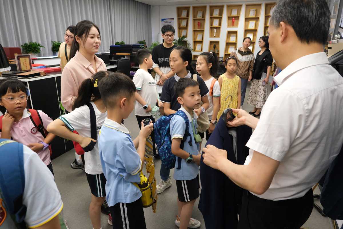 移动思政课第一站来到学校经纬廉洁文化馆,思政导师张玉玲带领大学生和小学生,畅游在中华传统服饰嬗变中。