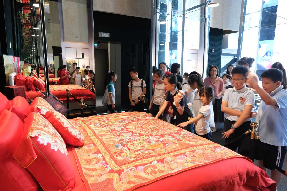 来到宁波时尚创意中心,同学们参观了博洋家纺与中国高定第一人郭培合作的手工刺绣寝品“幸福花”。这款寝品融合了捻针绣、插针绣、打籽绣、盘金绣等10余种传统非遗刺绣技艺,一款寝品成了一个刺绣博物馆,同学们惊叹于中国传统刺绣工艺的精美。之后,同学们还参观了博洋七星时尚家居用品,感受NFCC宁波时尚创意中心的建筑美学。