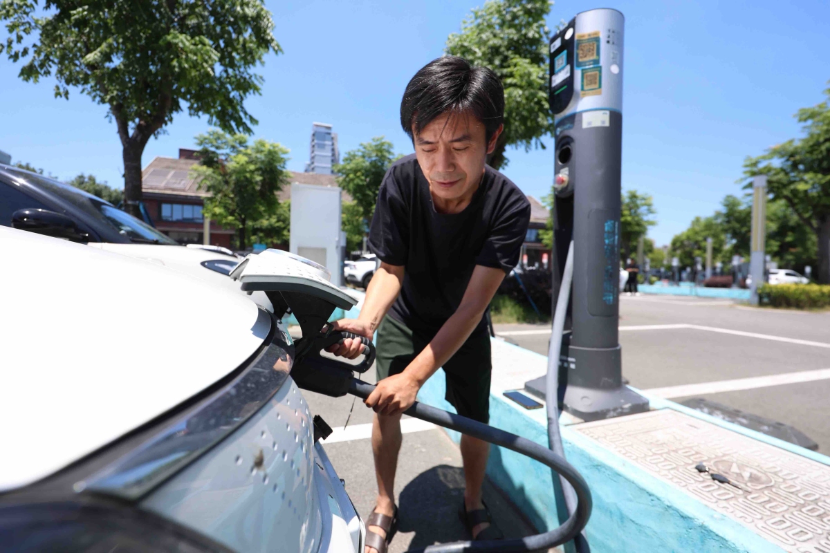 网约车司机到了充电站后先把车充上电。