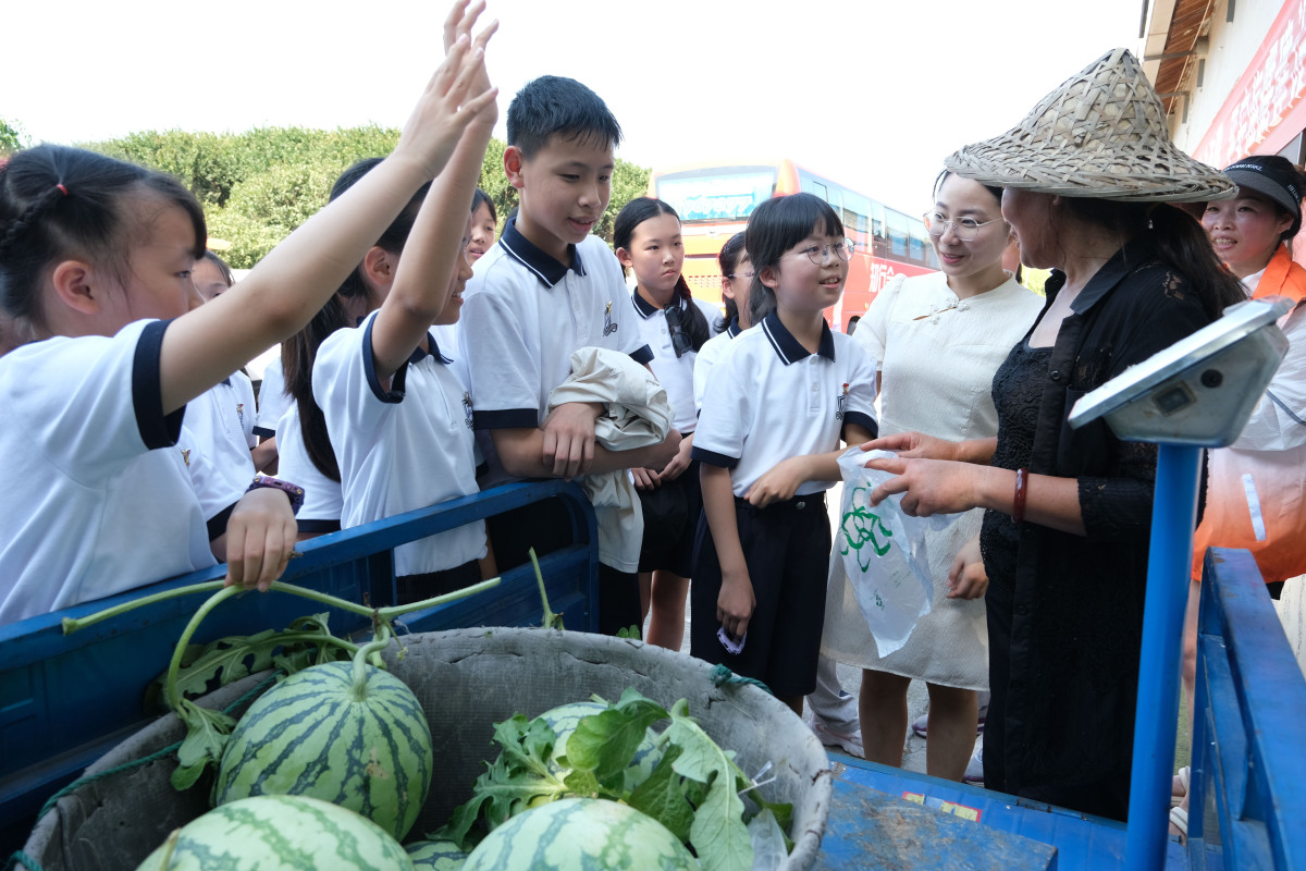 “阿姨,怎么种西瓜?一斤多少钱?”“八戒西瓜有什么特点,为什么这么有名?”在种植基地,海曙外国语学校的同学们问起“十万个为什么”。