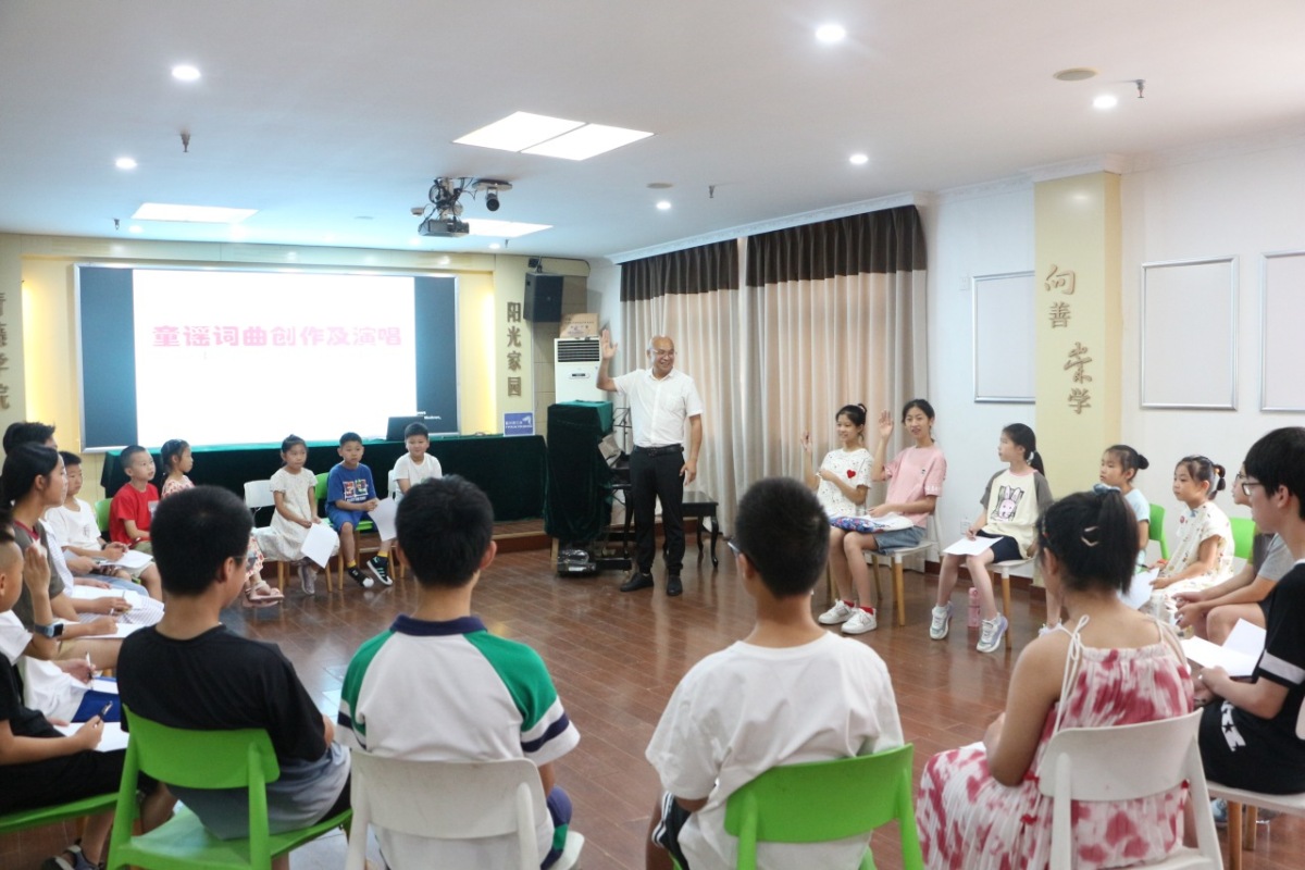 “春天花儿香,青藤好乘凉。”7月12日上午,在明楼街道常青藤社区的多功能活动室,20多个孩子围坐成一圈,跟随鄞州区文化特派员张满连的指引,进入词曲创作的奇妙世界。