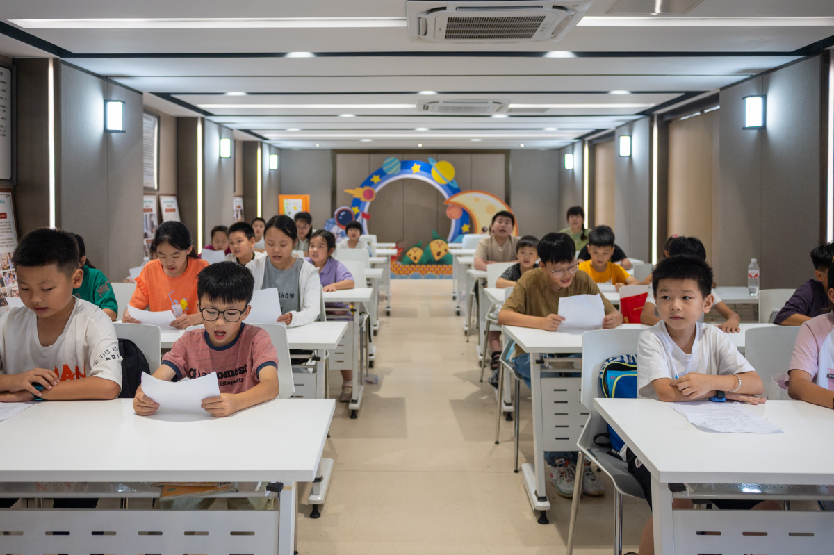 在村文化礼堂内,一堂特殊的音乐课正在进行:村歌创作者杨庆华正在教二十多位暑托班的孩子们唱村歌,并通过讲述歌词和创作背后的故事让孩子们了解自己的家乡。