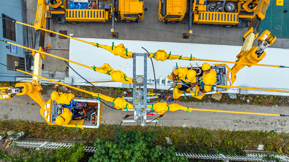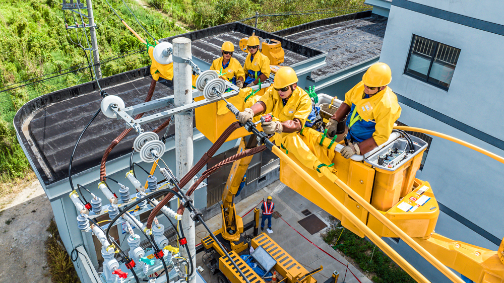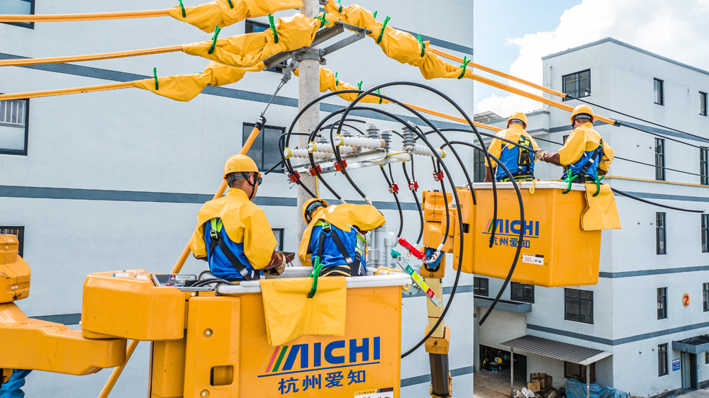 “此次带电作业的线路呈三角排列的架空单回路线路,有拉线、通讯线,电杆周围还有车棚等障碍,空间狭小,操作难度大。”陈奕宸说,上午室外温度接近40摄氏度,作业人员穿着不透气的防护装备,在不足3平方米的绝缘斗中工作,对于身体和意志都是一次考验。