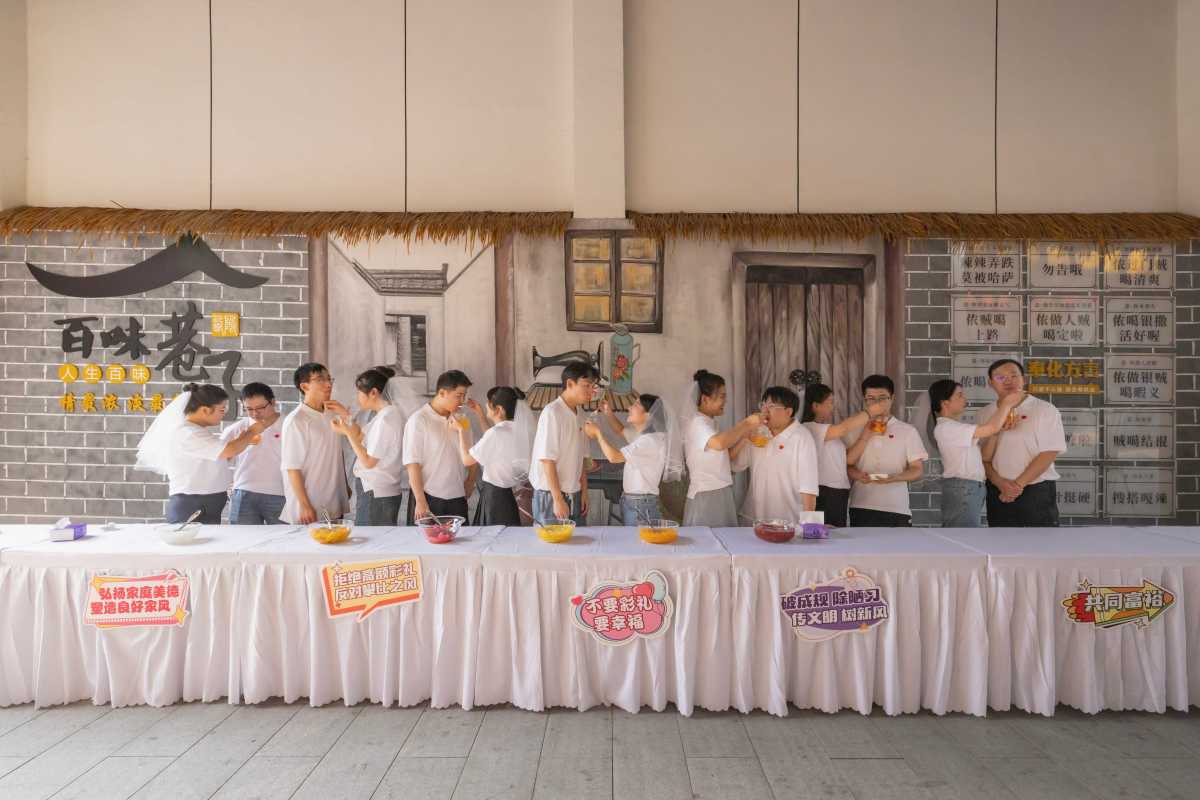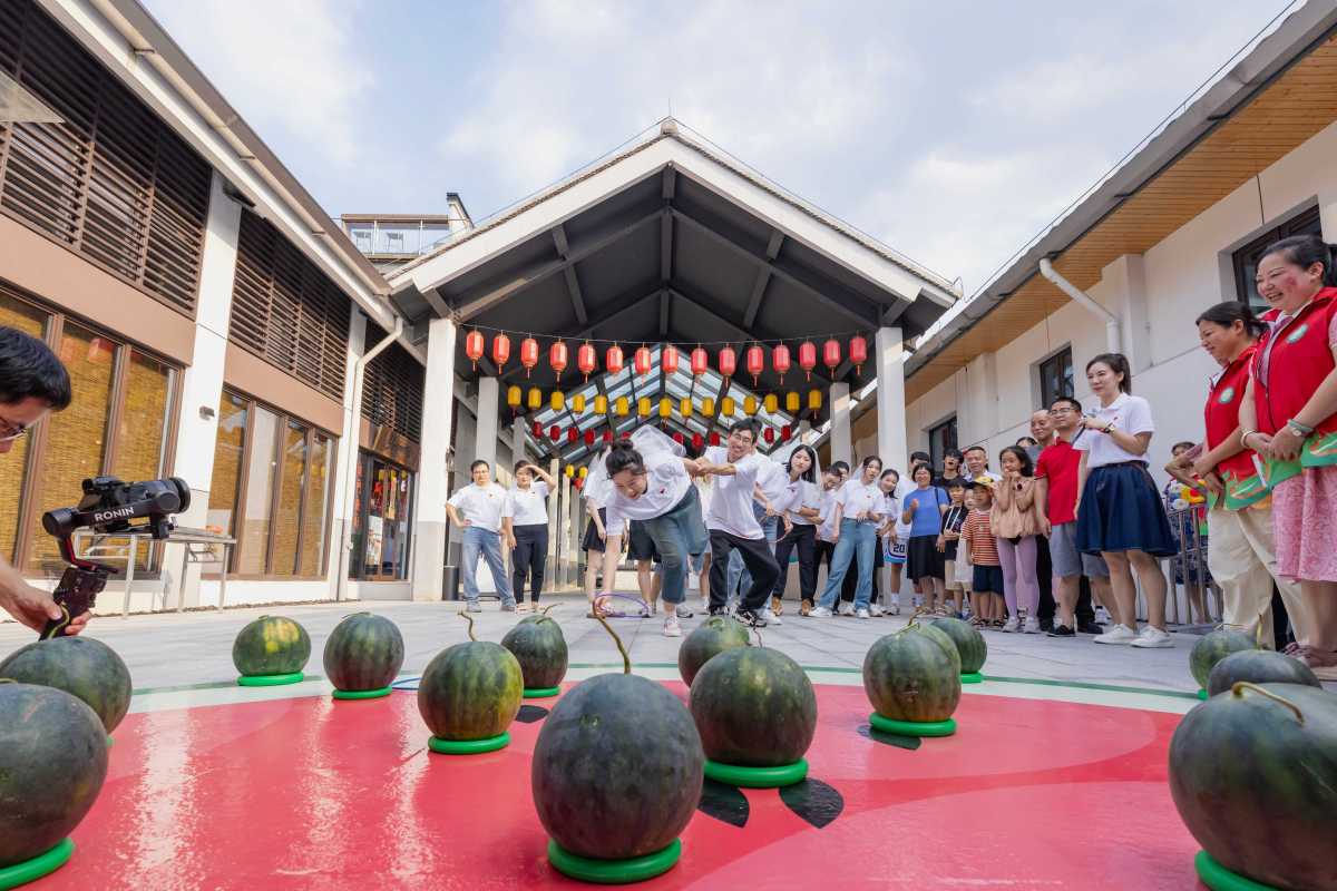 活动现场,7对新人身着统一的服饰,在亲友与宾客的见证下,共同宣读了《结婚誓言》,许下了对未来的美好承诺。仪式后,一场轻松愉快的趣味游园会更是将现场气氛推向了高潮,游戏环节蒙眼吃瓜、西瓜套圈等环节寓意深远,考验了新人们的默契与智慧。新人们不仅加深了彼此间的情感,也感受到了来自社会各界的祝福与温暖。