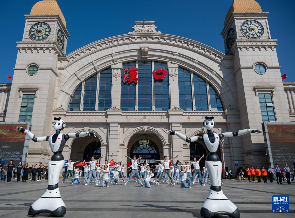 9月29日,中国铁路武汉局集团有限公司在汉口火车站广场开展迎国庆快闪活动。