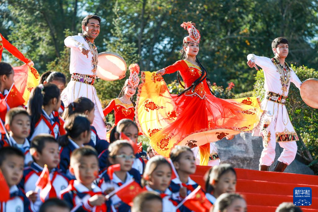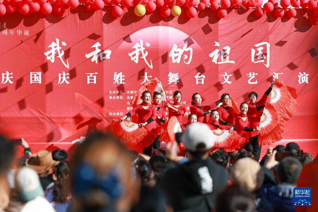 9月29日,乌鲁木齐市水磨沟区水磨沟街道北山社区新时代文明实践站文化服务队为居民送上国庆文艺演出。