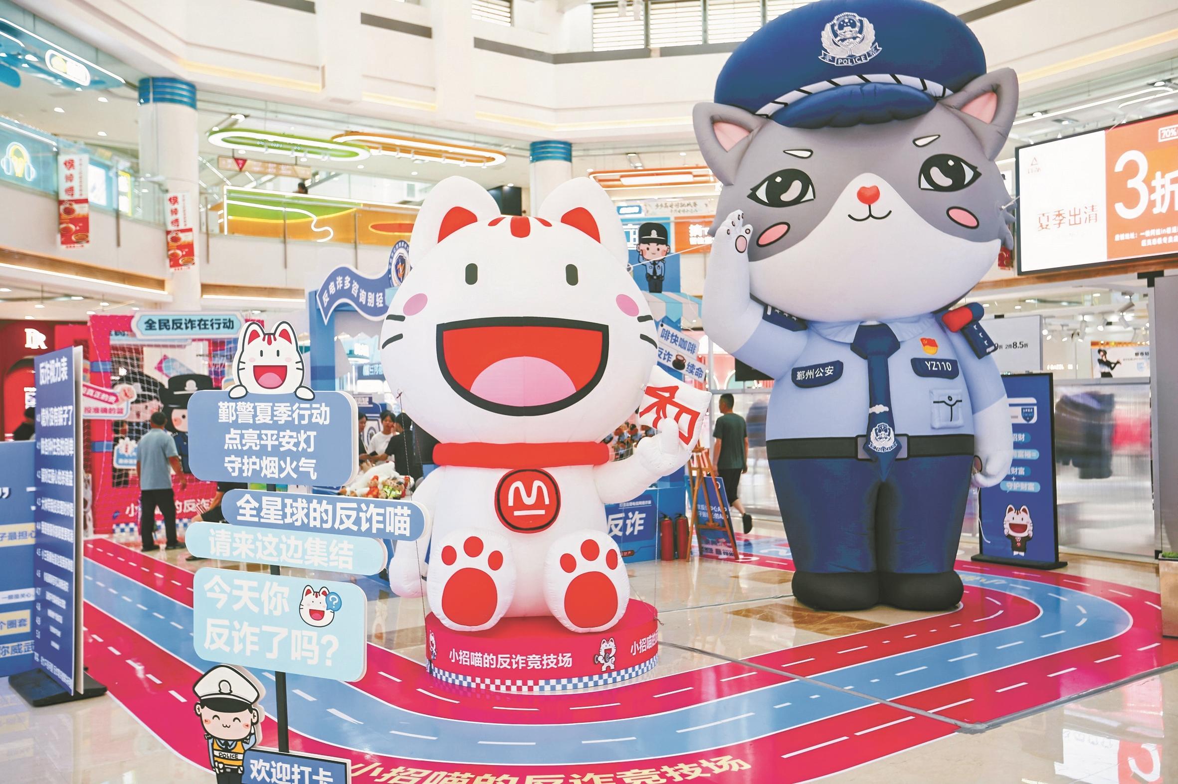“反诈喵”到场,助力鄞州公安开展反诈宣教活动。
